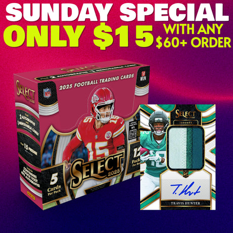 $99.00$116.00Unit price /UnavailableVery low stock (7 units)⭐Sunday Special! BREAK #10741 - 2025 Select Hobby (Random Team) *** Only $15 with any $60+ order!