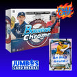 Look for 3 autographs, 3 Exclusive Numbered Chrome Prospects Geometric Refractor Cards, 3 Base Cards, 2 Chrome Prospects, 1 Base Card (Vets and Rookies), and 1 insert card (Meteoric Rise, Max Volume, Melt Mashers, It Came to the League, or ADIOS) per box on average.