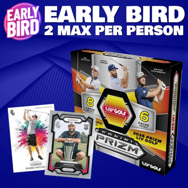🐥Early Bird! BREAK #10359 - 2025 Prizm LIV Golf Hobby 2 Box (Random Letter) *** 2 Max Per Person is backordered and will ship as soon as it is back in stock.
